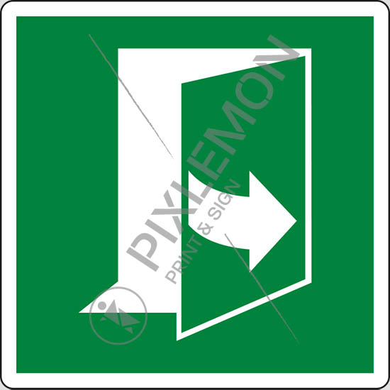 Cartello (per aprire la porta, tirare lato sinistro - door opens by pulling on the left-hand side)