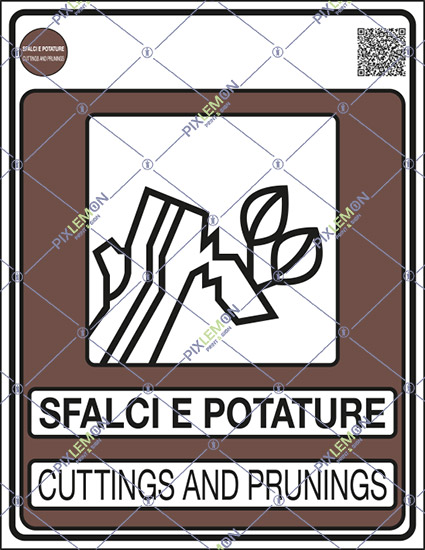 Cartello SFALCI E POTATURE CUTTINGS AND PRUNINGS (Gestione dei rifiuti - Norma UNI 11686)