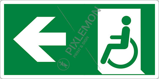Cartello (uscita di emergenza disabili a sinistra - emergency exit for people unable to walk left hand)
