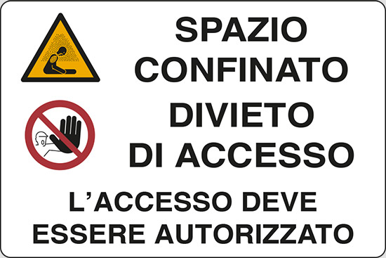 Cartello SPAZIO CONFINATO DIVIETO DI ACCESSO L'ACCESSO DEVE ESSERE AUTORIZZATO