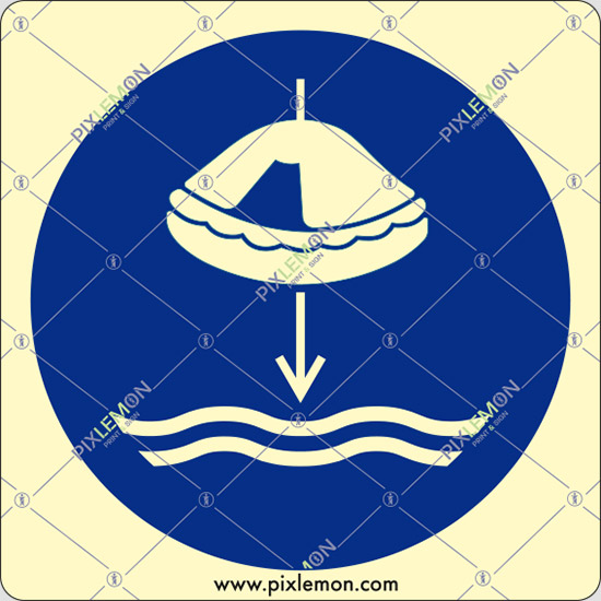 Cartello (calare in acqua la zattera di salvataggio nella procedura di lancio in mare - lower liferaft to the water in launch sequence)